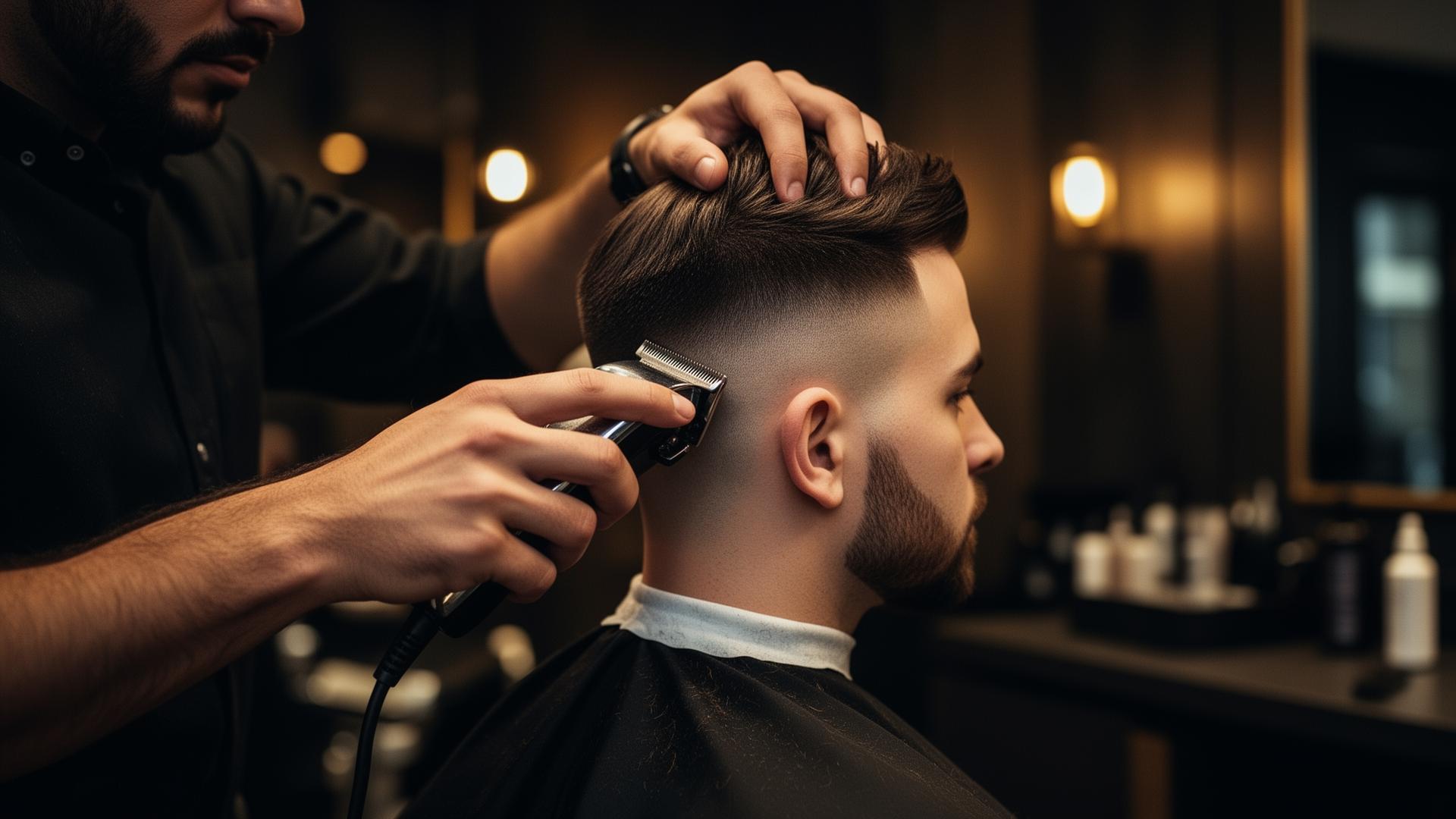 Precision skin or taper fade with a tailored top, finished with a hot-towel neck shave and crisp razor lineup.